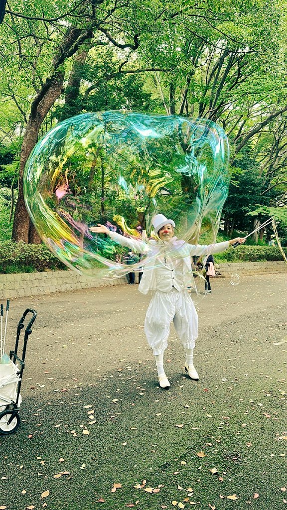 ※屋外でのシャボン玉ショーは風の影響を受けるため、シャボン玉の中に人が入るパフォーマンスはお断りしております。